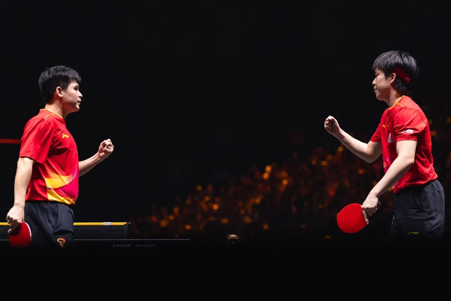 相差5岁,略带身高差,“头哥”和“小石头”在场上齐心协力,场下也会进行双打方面的探讨。“我俩其实聊过很多双打方面的问题,头哥也告诉了我很多经验。”林诗栋在决赛赛后如此表示。他在首轮赛后也透露过,“以后我们两个也会多配”。两次搭档,两次登顶大满贯赛,王楚钦/林诗栋这对组合在新加坡大满贯后时隔八个月再次夺冠,弥补了国乒在多哈世乒赛、美国大满贯、欧洲大满贯上男双失冠的遗憾。