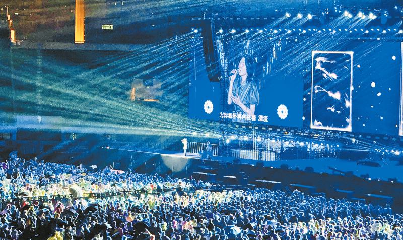 随着夜幕降临,场内荧光棒如星海般闪烁,欢呼声此起彼伏。